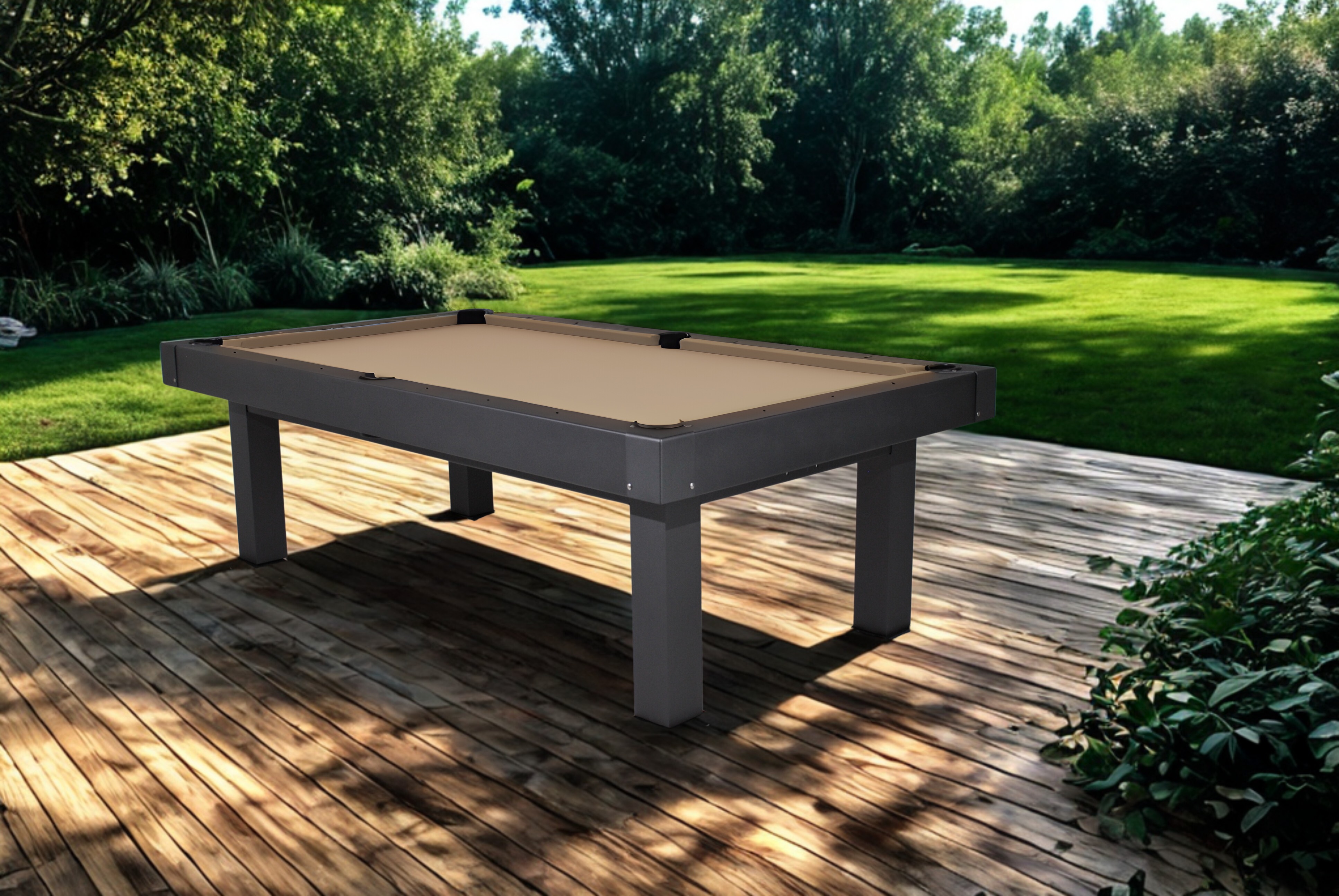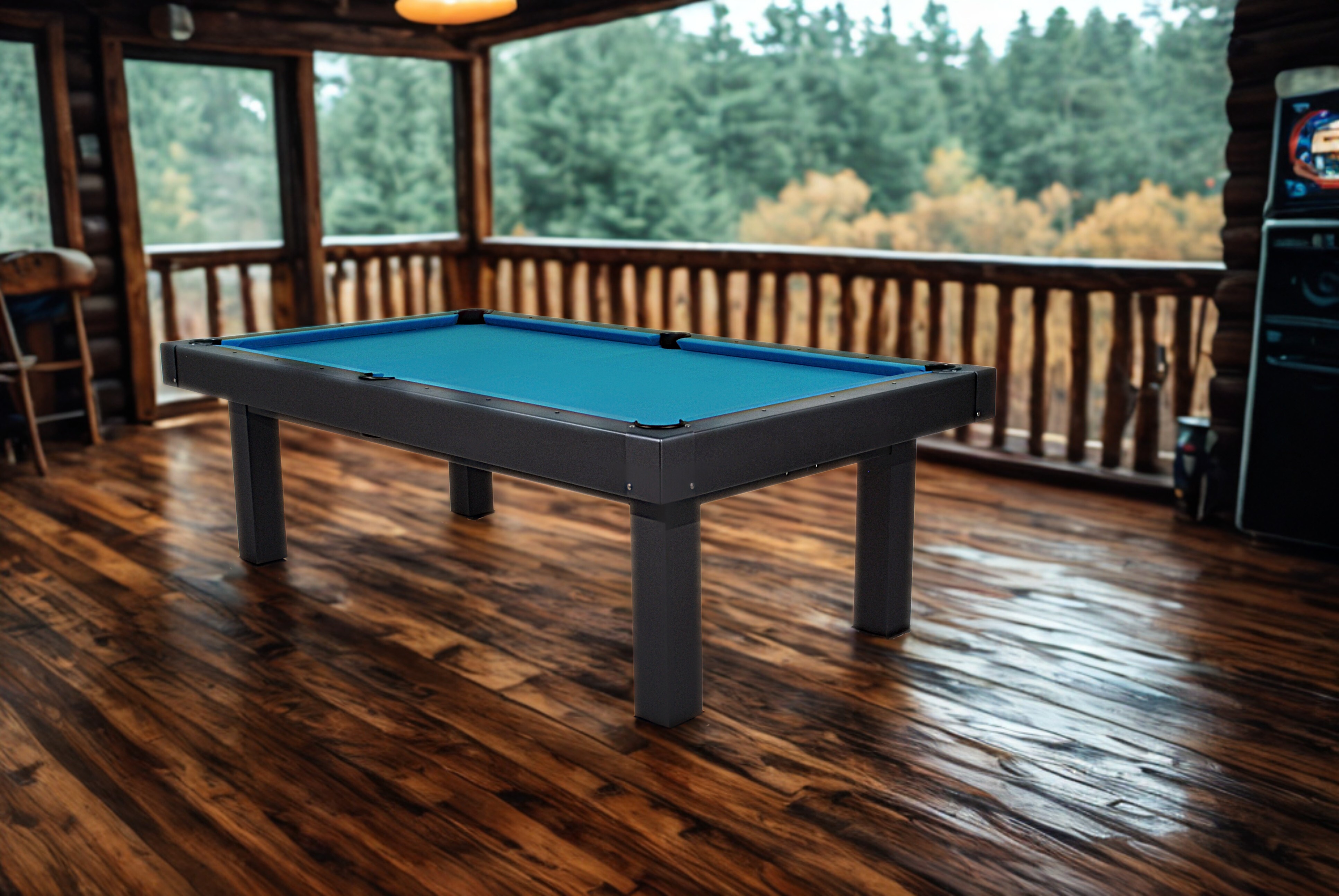 Elevate your outdoor entertaining with the Veranda Pool Table by True Billiards! Unbeatable value meets stunning design. Sporting a light grey powder coat finish, enclosed pockets and pillar legs, this table has a modern look that complements any outdoor space. Imagine sunshine, laughter, and friendly competition in your own backyard. The Veranda Pool Table isn’t just a game table, it’s the ultimate dine and play destination for you and your loved ones.The Veranda seamlessly transforms to fit your needs. Enjoy epic pool tournaments one minute, then simply add the optional dining cover top and benches (sold separately) for an elegant al fresco dinner party the next. Make your backyard the envy of the neighborhood.